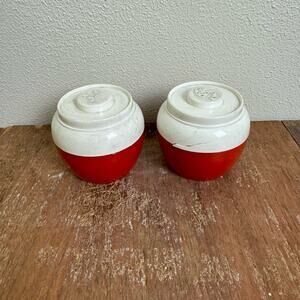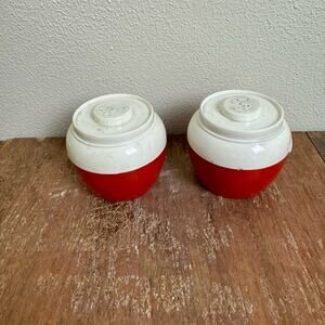 Vintage Red White Admiration Pot Salt and Pepper Shakers Plastic Made in USA