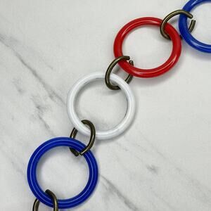 This fun vintage chain belt is perfect for adding that patriotic flair! The red, white, and blue links are so eye-catching and the adjustable design makes it super versatile. Love the Y2K festival vibes this gives off!
