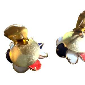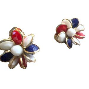 Vintage Red White Blue Clip on Earrings Gold Tone Made Hong Kong Patriotic