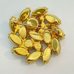 ⧫ Vintage 50s 60s prong set red, white and blue brooch in circular pattern in gold tone metal