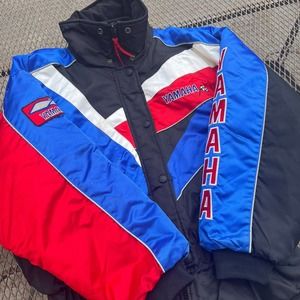 Vintage Red White & Blue YAMAHA Winter Jacket Coat Cold Weather Gear Women Large