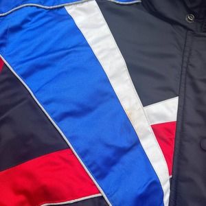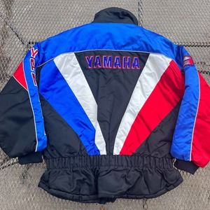 This vintage YAMAHA winter jacket is perfect for braving the cold weather. The red, white, and blue color scheme is eye-catching and patriotic, while the puffer style keeps you warm without sacrificing style.