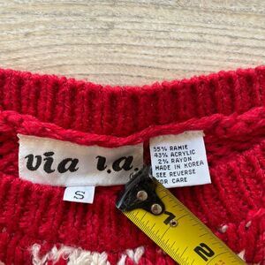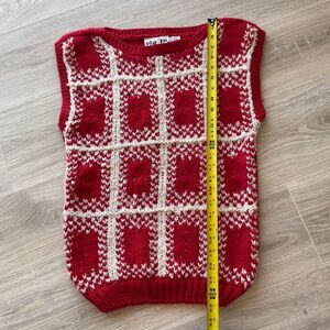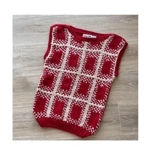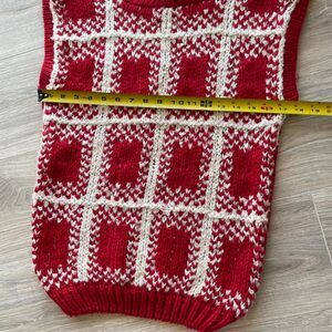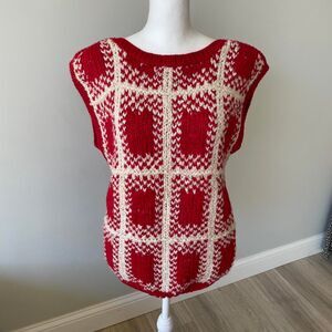 Vintage Red & White Knit Sweater Grid Check Pattern Women's Small Sporty Preppy