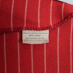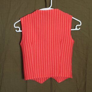 Cropped red vest / waist coat with white pinstripes. Darting in front & back.