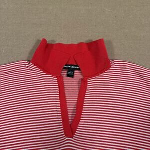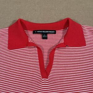 Vintage Red White Striped Knit Polo Top Short Sleeve Women’s Small Ellen Tracy