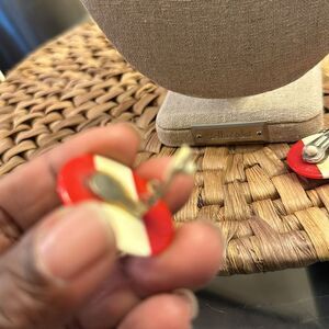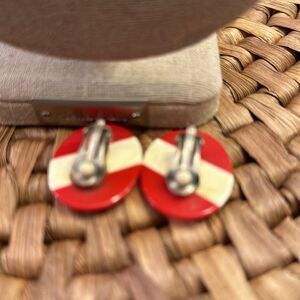 Vintage Red & White Non-pierced Button Earrings