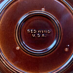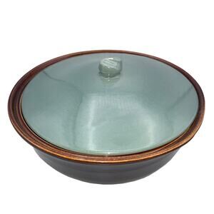 From Red Wing Pottery, this is a gorgeous 2-quart round casserole dish dish lid from the Oomph/Village Green collection made in the USA in the 1940s.