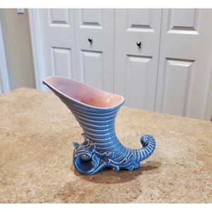 Vintage Red Wing #1095 Blue and Pink Lined Cornucopia Vase