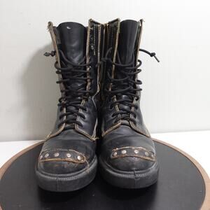 Condition: Fair. Moderate wear throughout. Visible scuffs and scratches, especially on the toes and uppers. Noticeable edge and seam wear, some loose threads, and heavy creasing. Toe cap leather is cracked and shows loss of stitching. Outsoles and heels have wear, but tread remains in usable condition. Please review photos for all flaws and details before purchasing.