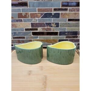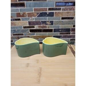 Vintage Red Wing Candle Holders, MCM Art Pottery, Green Leaf Shape, MCM