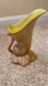 -Available is a beautiful vintage brown speckled cornucopia vase with a chartreuse interior.