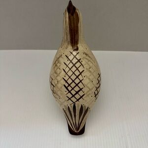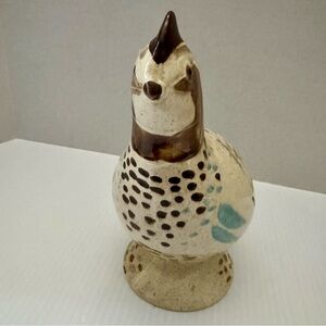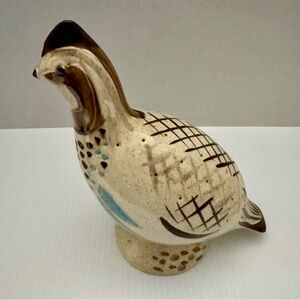 The 1960’s vintage Red Wing Pottery appetizer server features a hand painted quail pattern on clay and ceramic materials. Perfect for serving appetizers and snacks or as a decorative display piece. The back of the quail has little holes for inserting finger foods. Raised Red Wing mark on the bottom.