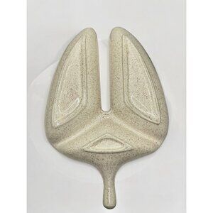This ceramic divided dish features a vintage-inspired speckled finish with hand-painted bird and floral designs. Its unique shape and handle add functionality and charm.