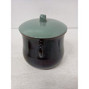 Vintage Red Wing Pottery Village Green Bean Pot Cookie Jar Canister Brown Teal Lidded