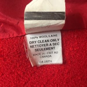 Size small/medium. Heavy padded shoulders. Bust 32 inches. Waist 34 inches. Length approx inches. 100% wool. Lined. Worn several times.