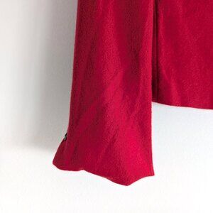 Make a bold statement with this stunning vintage red wool blazer featuring a sleek black velvet collar. The double-breasted front with black buttons adds a touch of timeless sophistication, while the cropped length gives it a modern edge. A structured silhouette enhances its flattering fit. Perfect for the holidays, date nights, or dressing up your favorite jeans.