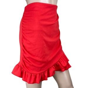 Vintage Red peplum Ruffled Ruched Layered Stretch Bodycon Mini Skirt Size small