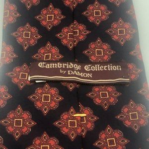 Vintage Cambridge Collection by Damon Tie, standard with 3.75" Blade in great shape. Colors are red, black, and gold.