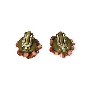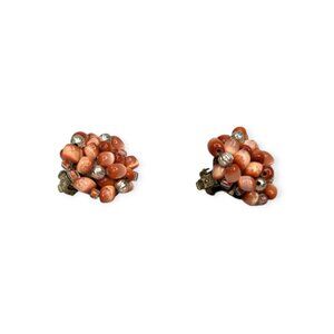Vintage Red/Brown Beaded Clip On Pair Earrings