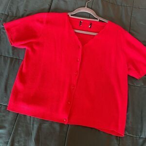 Vintage Red Button-Up Women's Short Sleeve Cardigan Top Size Medium