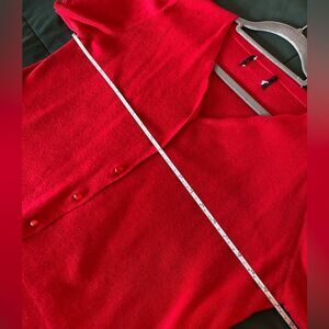 Elevate your wardrobe with this vibrant vintage red button-up sweater top. Perfect for any occasion, this stylish piece adds a pop of color to your outfit. It's a lightweight knit material, soft and cozy! Beautiful scalloped neckline design. The tag is cut out, but the top is in great condition. Measurements in photos, estimated size medium.
