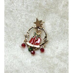 Vintage Red,Gold,Green Enamel Wreath Star and Bell Pin