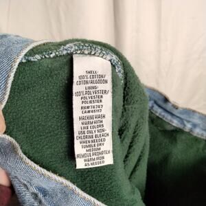 Vintage redhead brand green fleece lined jeans. Light wash with green fleece lining. High rise, tapered leg. Warm and cozy. Good condition, there are a couple holes in the back pocket, but they don´t go through, it´s just the pocket. There´s also a bit of dinginess on the knees, but barely noticeable. 100% cotton, rigid denim. Waist: 33in, Rise: 11.5in, inseam actual: 29in.