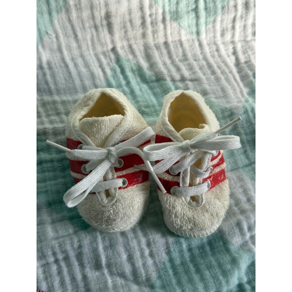 Vintage Red-Stripe Terry Cloth Baby Sneakers — Tiny Retro Track Stars