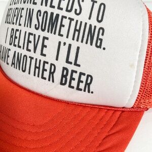 Vintage Reddish Orange Trucker Hat Mesh Snapback Beer Drinking Funny Novelty