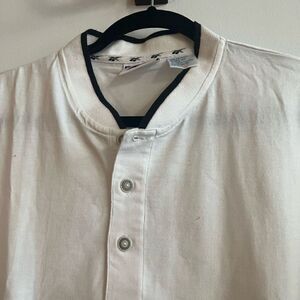 Vintage Reebok 100% Cotton White & Black Rugby Shirt - Medium