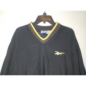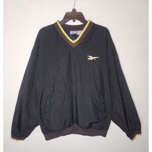 Vintage Reebok Black & Yellow Nylon V-Neck Pullover Windbreaker Mens Large