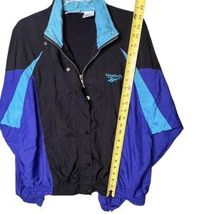 Vintage Reebok Jacket Womens Large Black Purple Blue Windbreaker 90s Track Coat