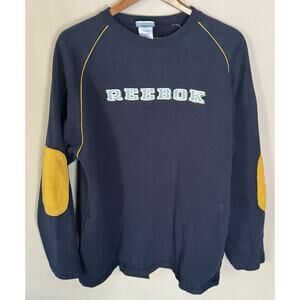 Vintage Reebok Mens Sweatshirt L Crew Y2K Puffy 3D Spellout Rugby Elbow Patches