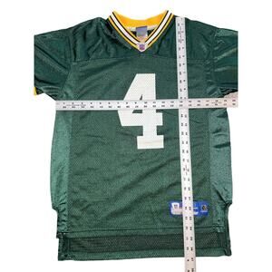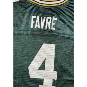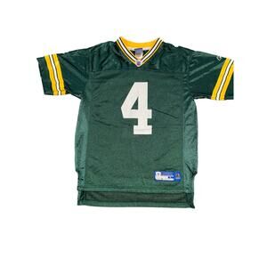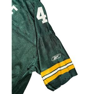 Show your support for Brett Favre and the Green Bay Packers with this vintage Reebok NFL jersey. The jersey features #4 on the back and is in youth size L (14-16). The green color represents the team's colors and the jersey is perfect for any football fan looking to add to their collection. The jersey is pre-owned and has been well taken care of to ensure its quality. Get your hands on this classic jersey today!