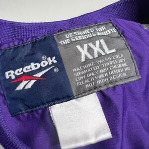 Authentic Vintage Reebok Windbreaker Pullover Jacket in vibrant purple, men’s size XXL. Classic 1990s/early 2000s Reebok design — lightweight with striped trim, embroidered logo, and soft inner lining.