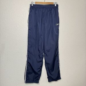 Vintage Reebok Track Pants L Women Blue Active Ankle Zip Logo Baggy 90s Y2k