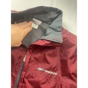 Vintage Reebok Windbreaker Jacket Mens Large Black Red Full Zip Mock Neck