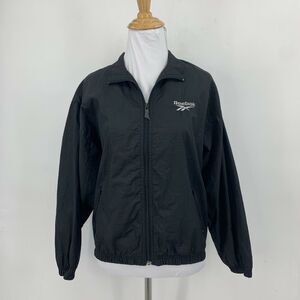 Vintage Reebok Windbreaker Womens M/L Black Full Zip Big Logo Jacket 90s *READ