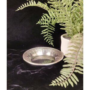 Vintage Reed and Barton Silverplate Dish. Crafted in 1961 in America, this beautiful dish features intricate engraved designs. It is often used as a candy dish or trinket dish. It would also be perfect for an elegant addition to any decor. Approximate measurements: 6 in x 6 in x 1.25 in. Please see the provided photos for further details.