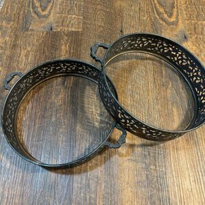 Vintage Reed and Barton cradle with handle Round Casserole Dish ? set of 2