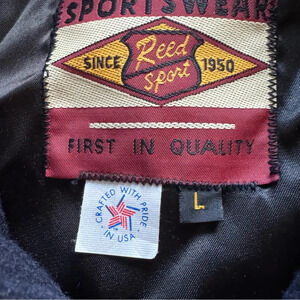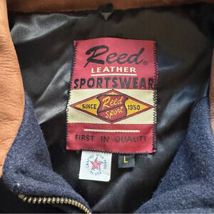 Vintage Reed sportswear leather wool varsity jacket navy brown corvette large