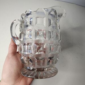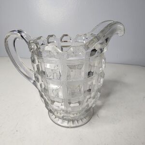 Vintage Reeded Waffle Berlin Block Pitcher Adams Westmoreland Glass