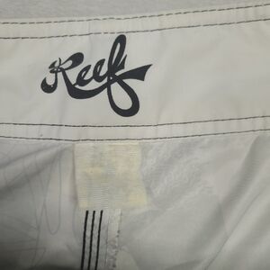Vintage Reef Board Shorts Men 34 Beige Brown AOP All Over Swim Trunks Surf Y2K