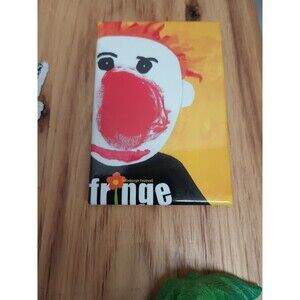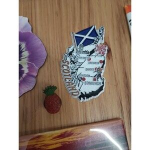 Vintage Refrigerator Magnet Collection California Scotland Rabbit Brisket Van, Fringe festival. Pineapple. Hollywood cow. Purple pansy flower. san Clemente California orange county palm trees.