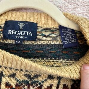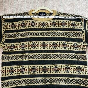 Vintage Regatta Sport Snowflake Stripe Pattern 100% Wool Sweater Size Medium