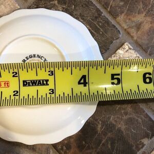 This listing is for a used, pre owned trinket/jewelry dish , has no chips or cracks. Gold, scalloped trim around the edge.