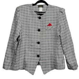 Vintage Reina Blazer Top / Size-12 P / Color- White And Multiple Colors / Lightweight, Shoulder Pads / Made In The USA /