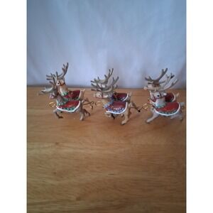 The product is a set of three vintage reindeer ornaments from 1992. These multicolor ornaments feature a classic reindeer shape and are designed for Christmas decor. Each ornament is part of a collection of holiday and seasonal collectibles, making them a charming addition to any Christmas tree. With a nostalgic vintage appeal, these reindeer ornaments are sure to bring a touch of festive nostalgia to your holiday celebrations.