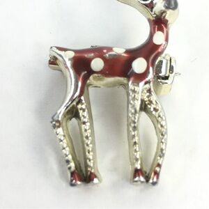 Vintage Reindeer Pin Tiny Christmas Bambi Rudolph The Red Nose Reindeer Brooch