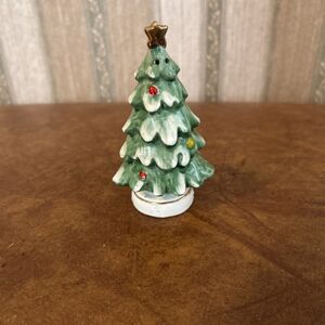 This vintage Relco Christmas Tree Salt Shaker is a small ceramic ornament designed specifically for holiday gatherings. Featuring a festive multicolor design and a shaker style, this original piece from Japan is perfect for adding a retro touch to your Christmas table setting. With its unique holiday theme and universal food compatibility, this collectible item is a charming addition to any kitchen or home decor.